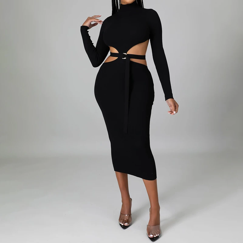Sexy Decent Women Club Street Slim Fitting Midi Dress 2021 High Neck Skinny Lacing Hollow Out Solid New Autumn Winter Clothing Dresses Aliexpress
